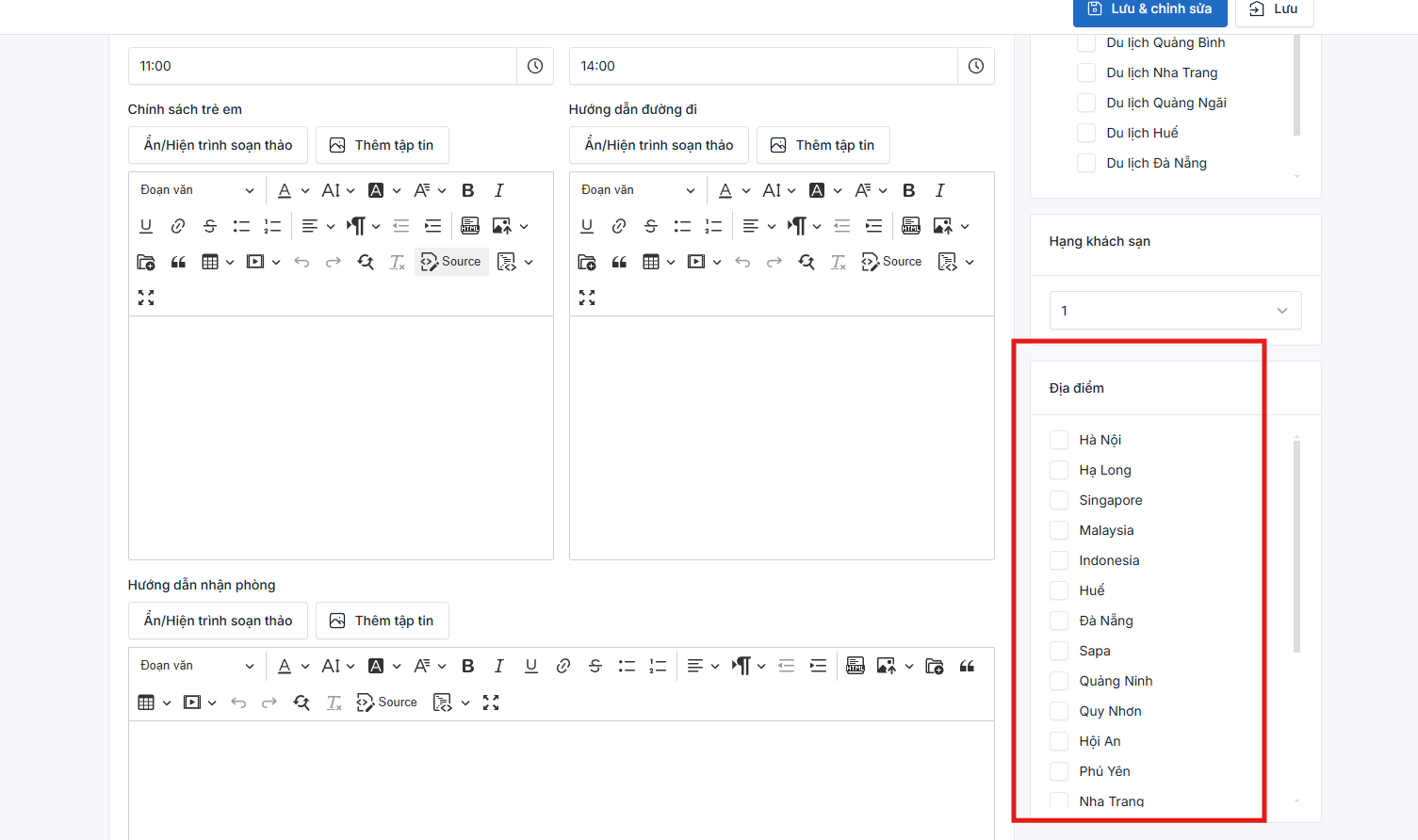 B2: Nhập thông tin về địa điểm cần tạo mới: tên, ảnh, thứ tự,...