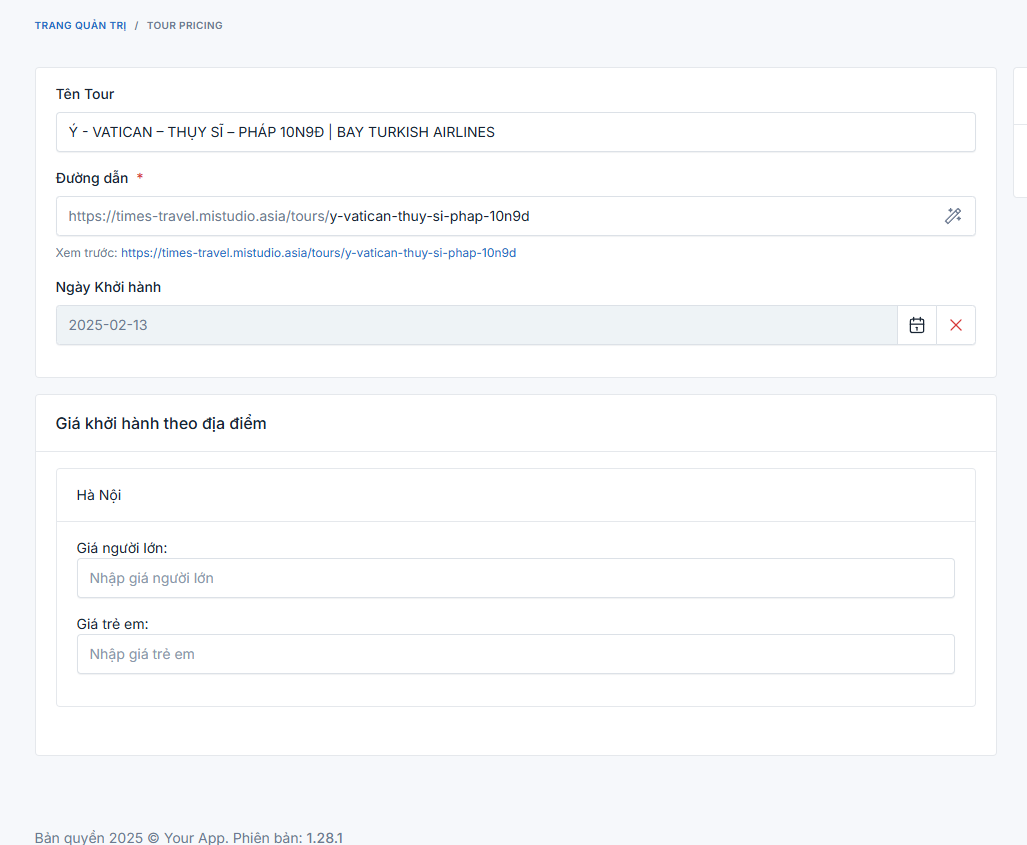 B2: Nhập tên tour -> đường dẫn sẽ tự sinh khi click vào đường dẫn đó sẽ ra tour ở ngoài website