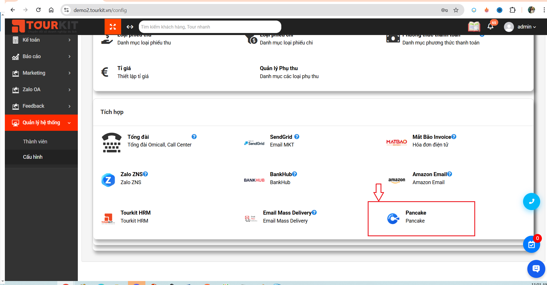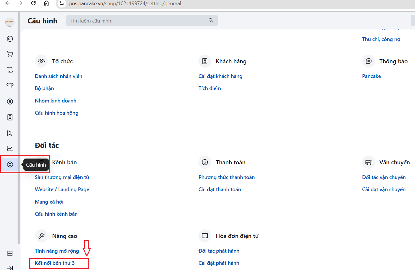Bước 2: Vào Cấu hình = > Kết nối bên thứ 3
