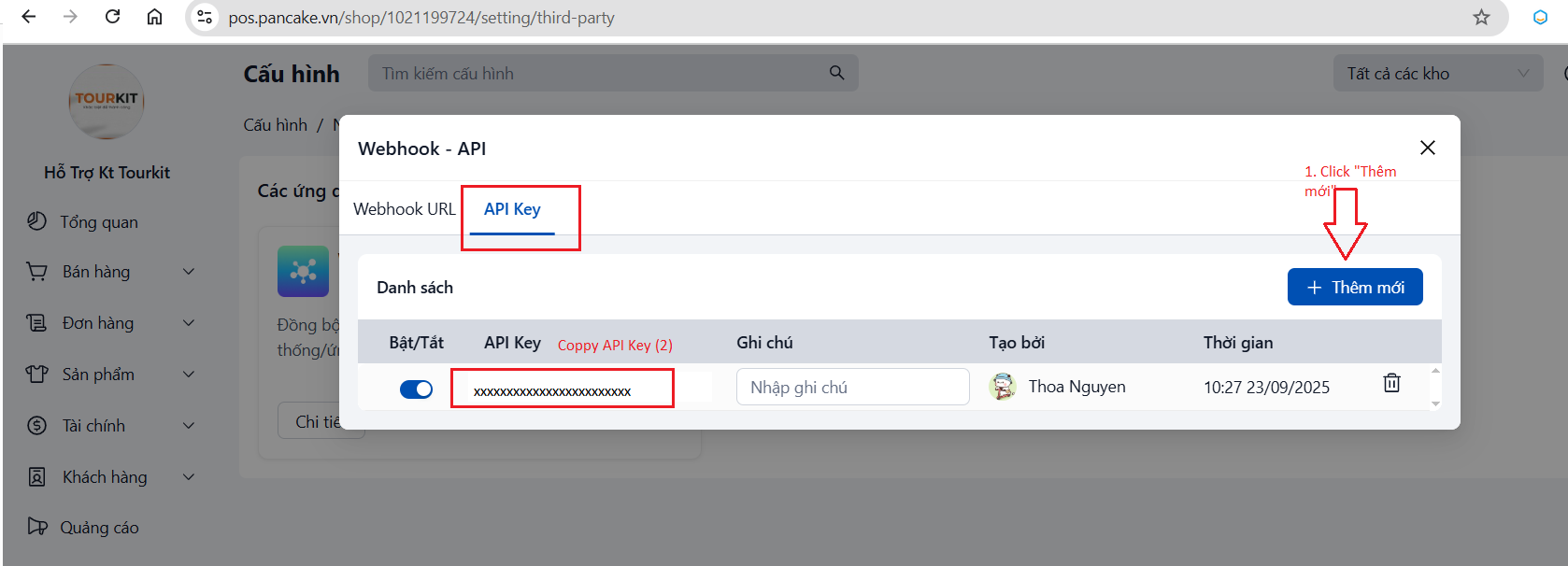 Bước 4: Click tab API KEY => coppy API KEY(2) :