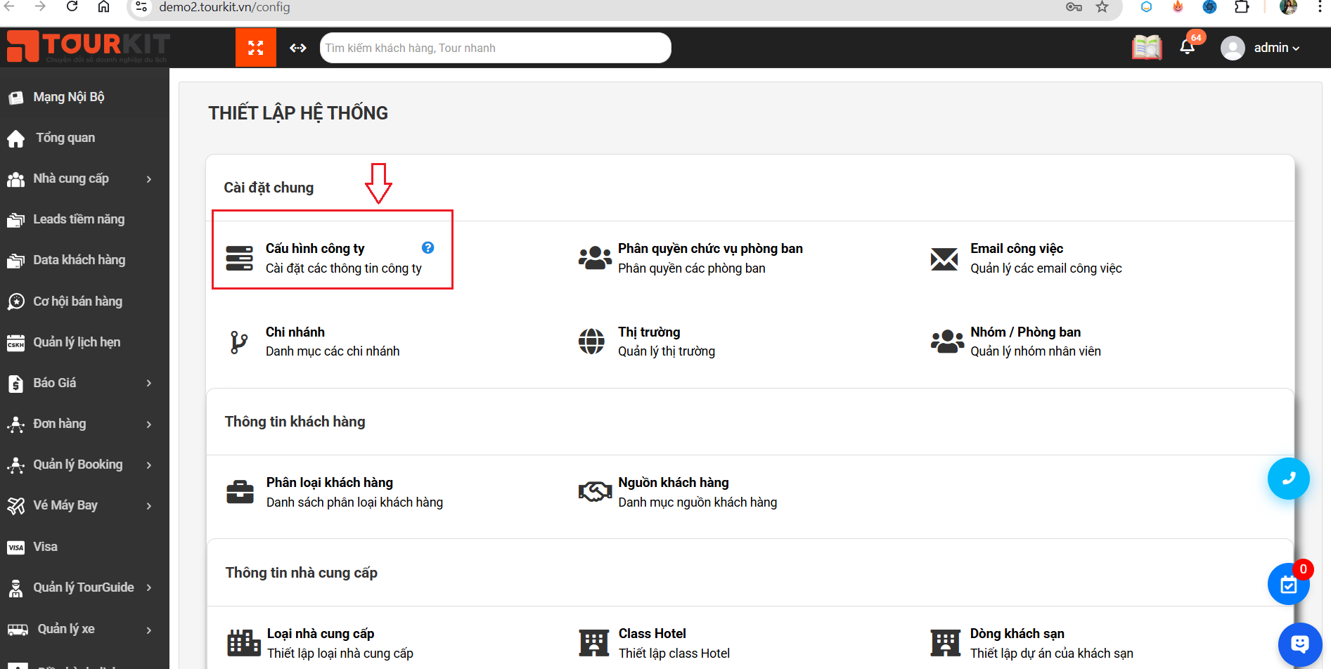 Bước 5: Truy cập Tourkit VD: https://demo2.tourkit.vn/login => Vào Cơ hội bán hàng: