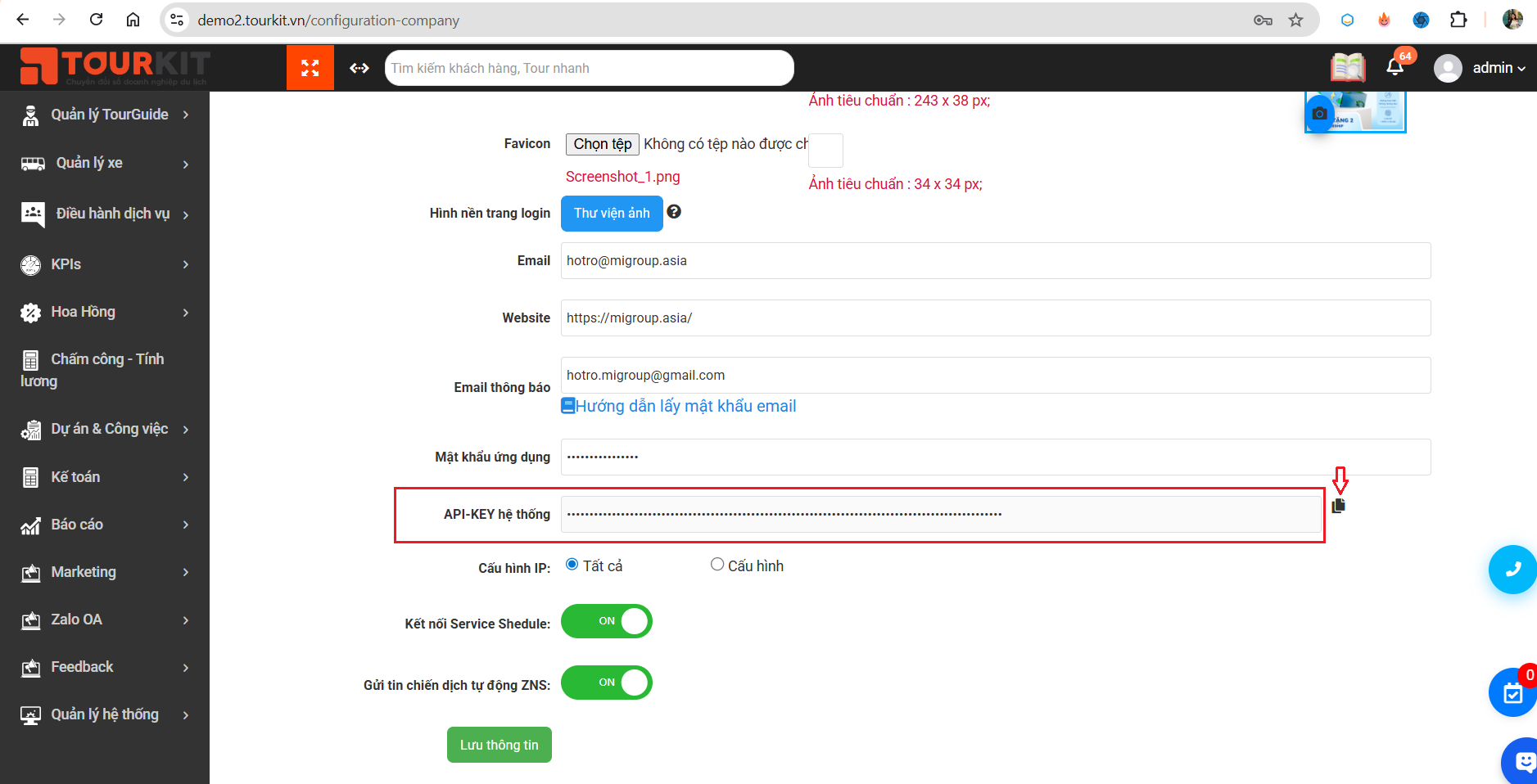 Bước 4: Tại mục API-Key hệ thống => thực hiện coppy