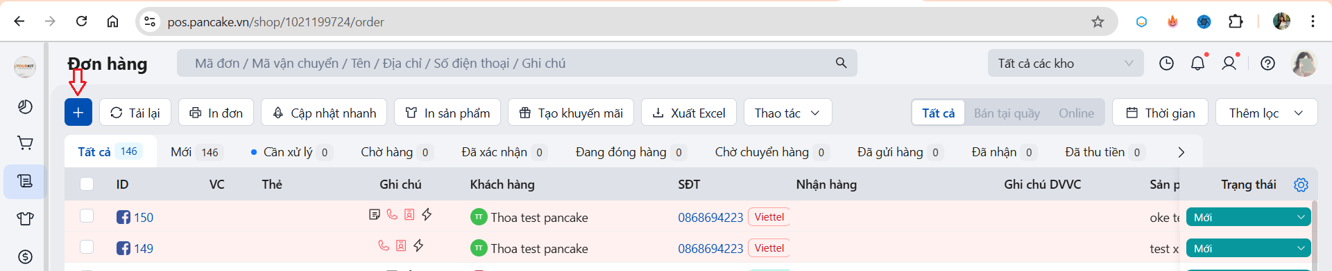 Bước 1: Tại POS trên Pancake => Click Đơn hàng