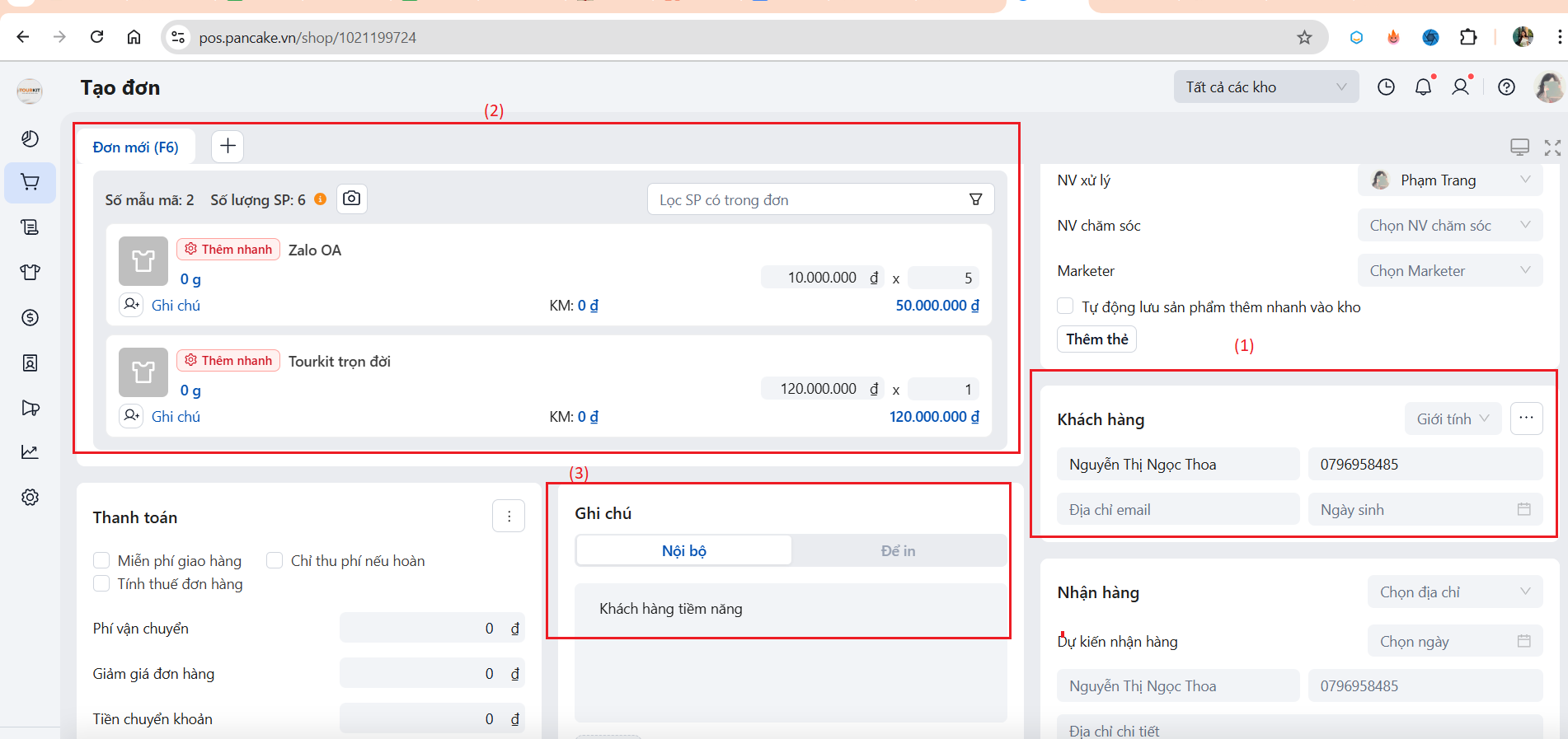 Bước 2: Click Tạo => popup Tạo KH xuất hiện :