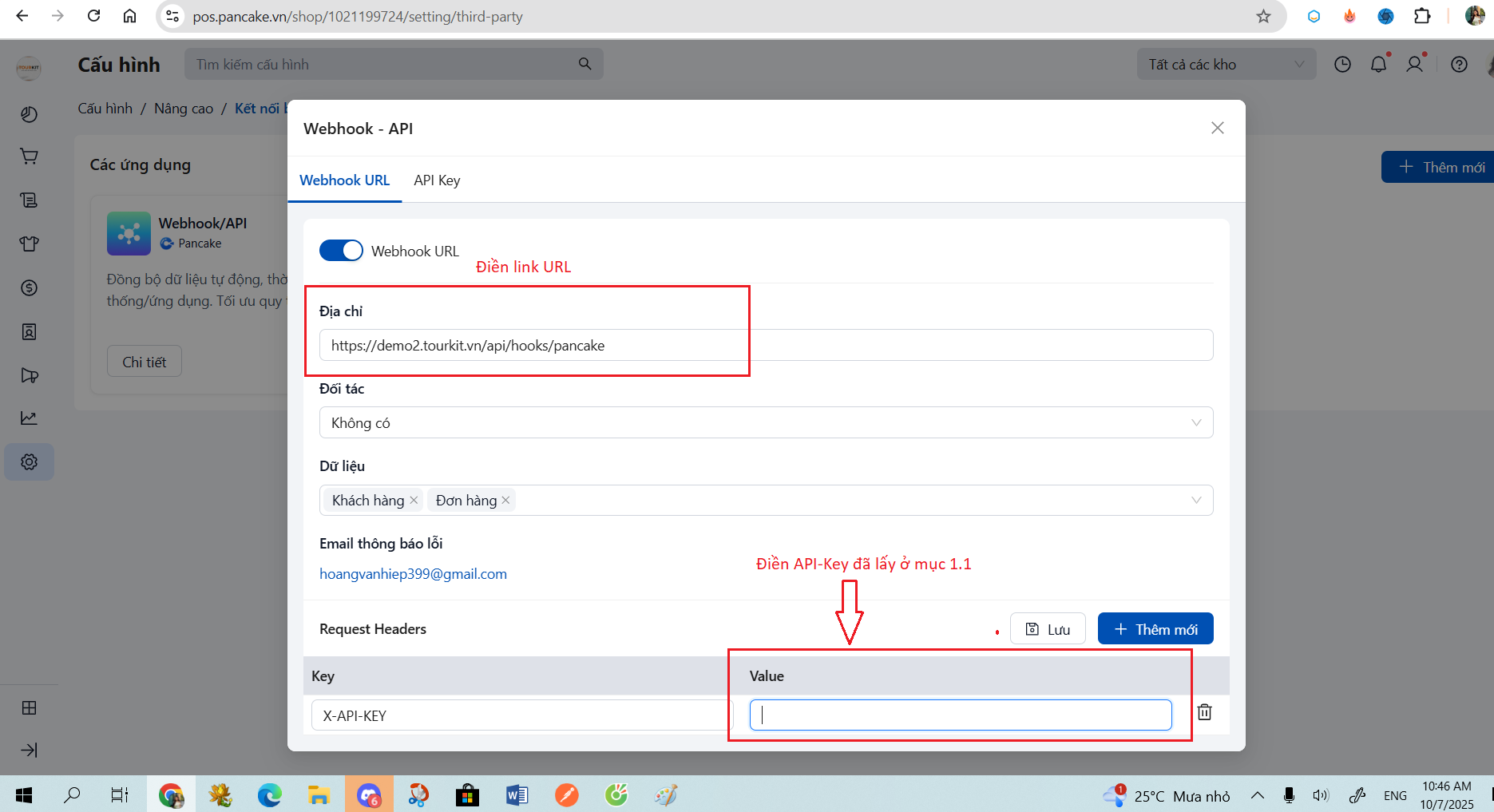 Bước 4: Điền URL và Value => Lưu cấu hình: