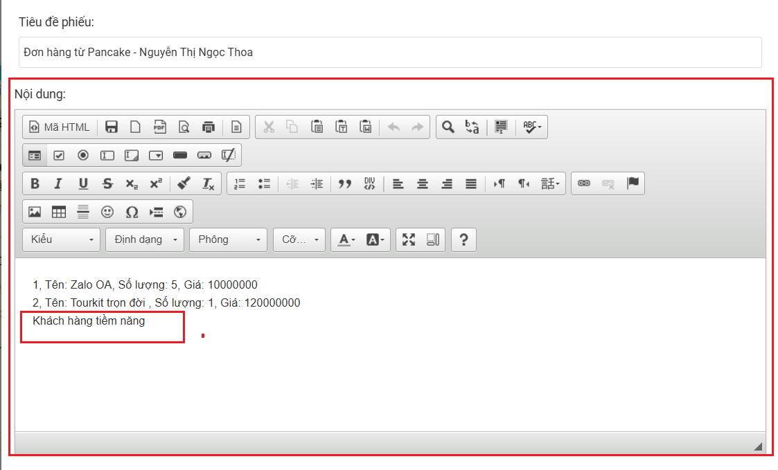 - Thêm nội dung ghi chú