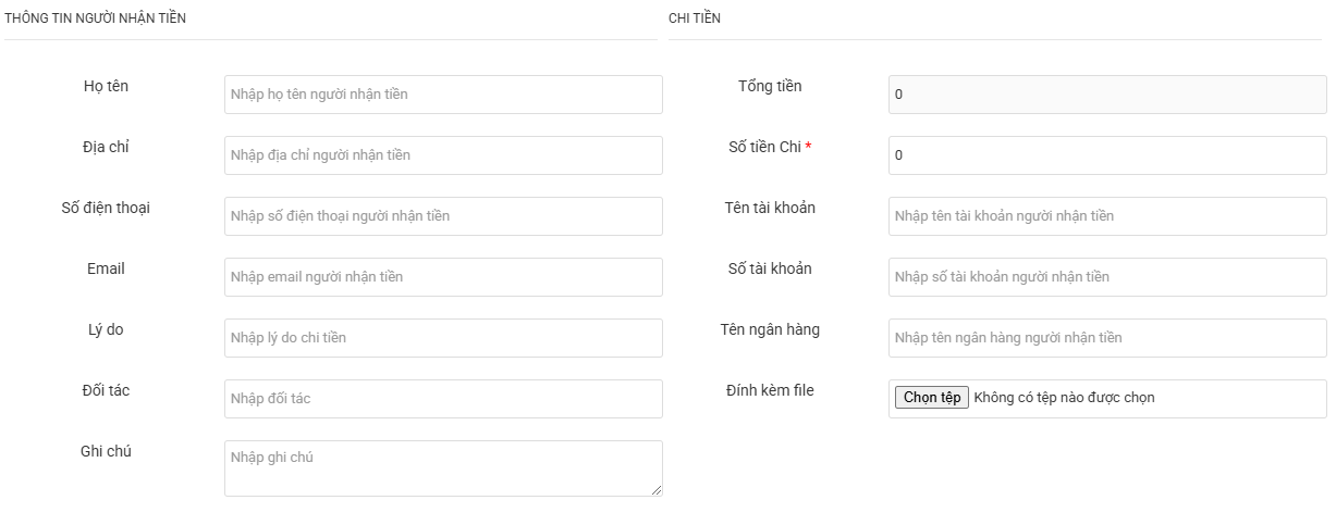 - Số tiền thu: Nhập số tiền chi, đề nghị chi cho đối tác