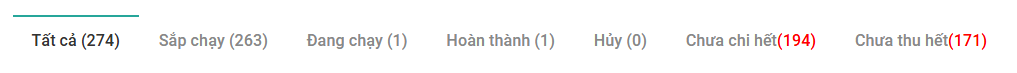 | Chưa thu hết | Bộ đếm + lọc tổng số tour chưa thu hết. |
