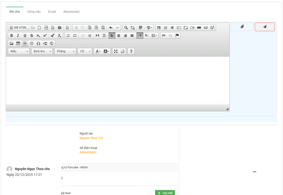 • Tự động điền thông tin khách hàng ( tên, số điện thoại, email, địa chỉ ) từ Cơ hội vào phần thông tin trên Form tạo mới