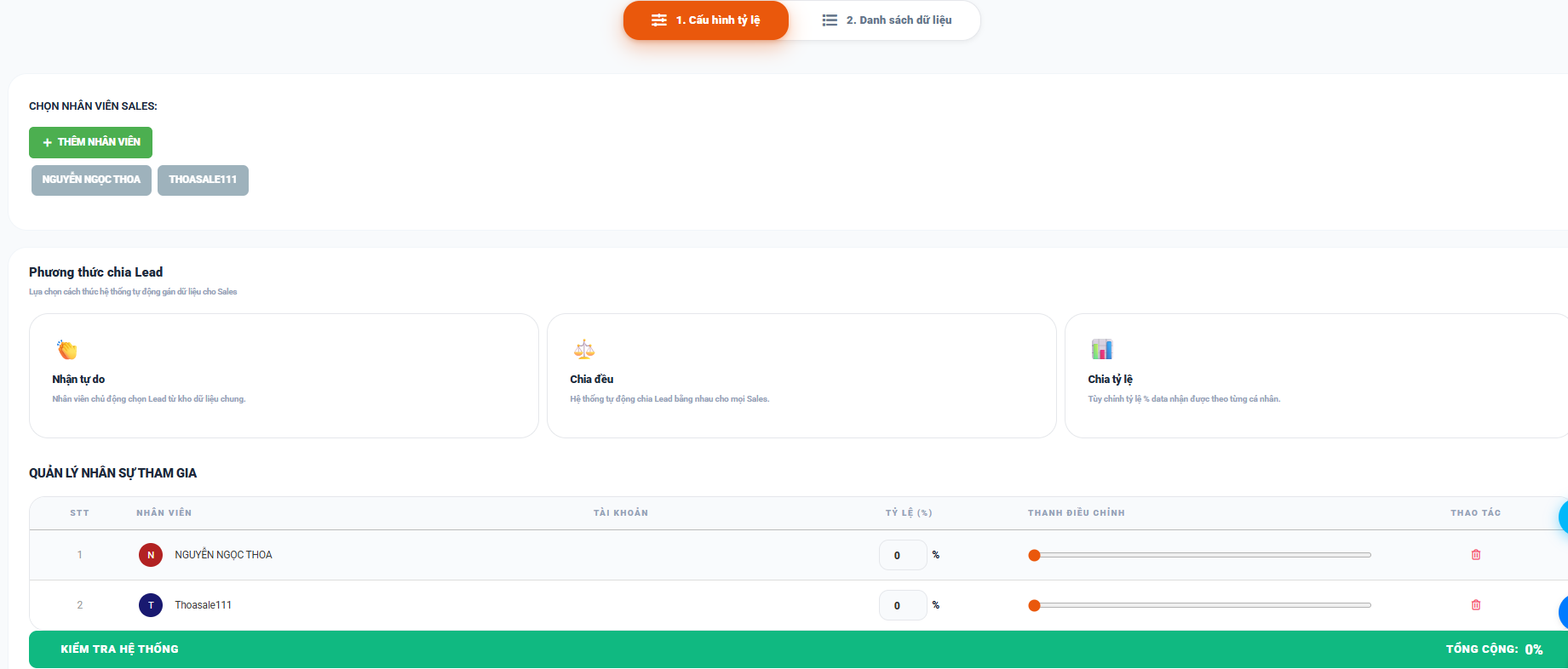 để thêm nhân viên vào cấu hình cách thức nhận leads
