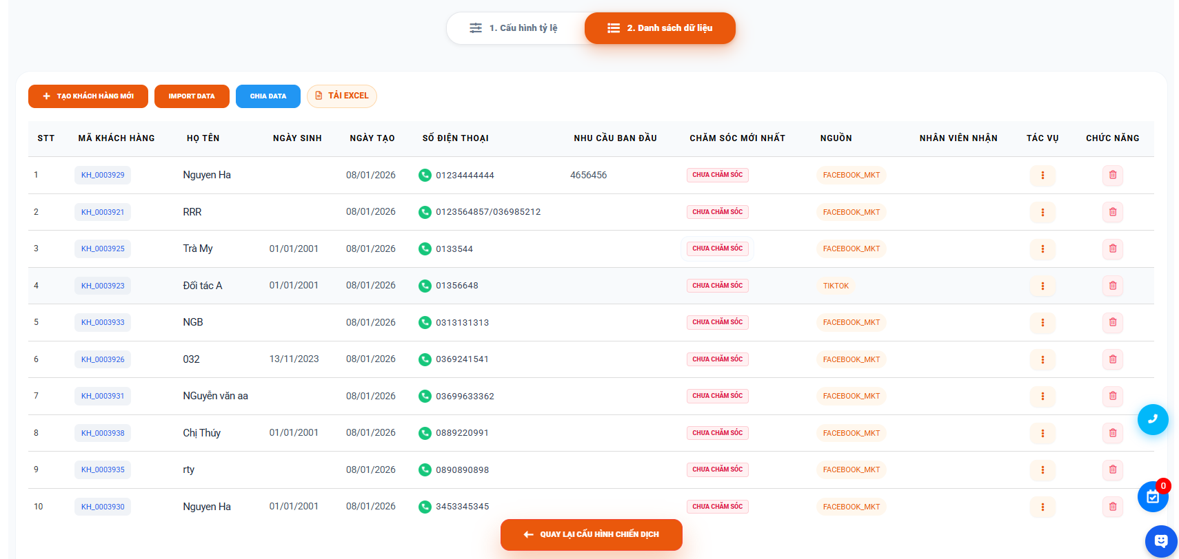 Người dùng có thể chuyển khách sang chiến dịch khác bằng cách click [Tác vụ]