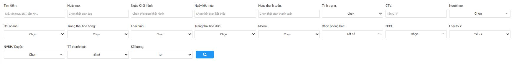 | Ngày khởi hành | Cho phép người dùng tìm kiếm nhanh theo ngày khởi hành |