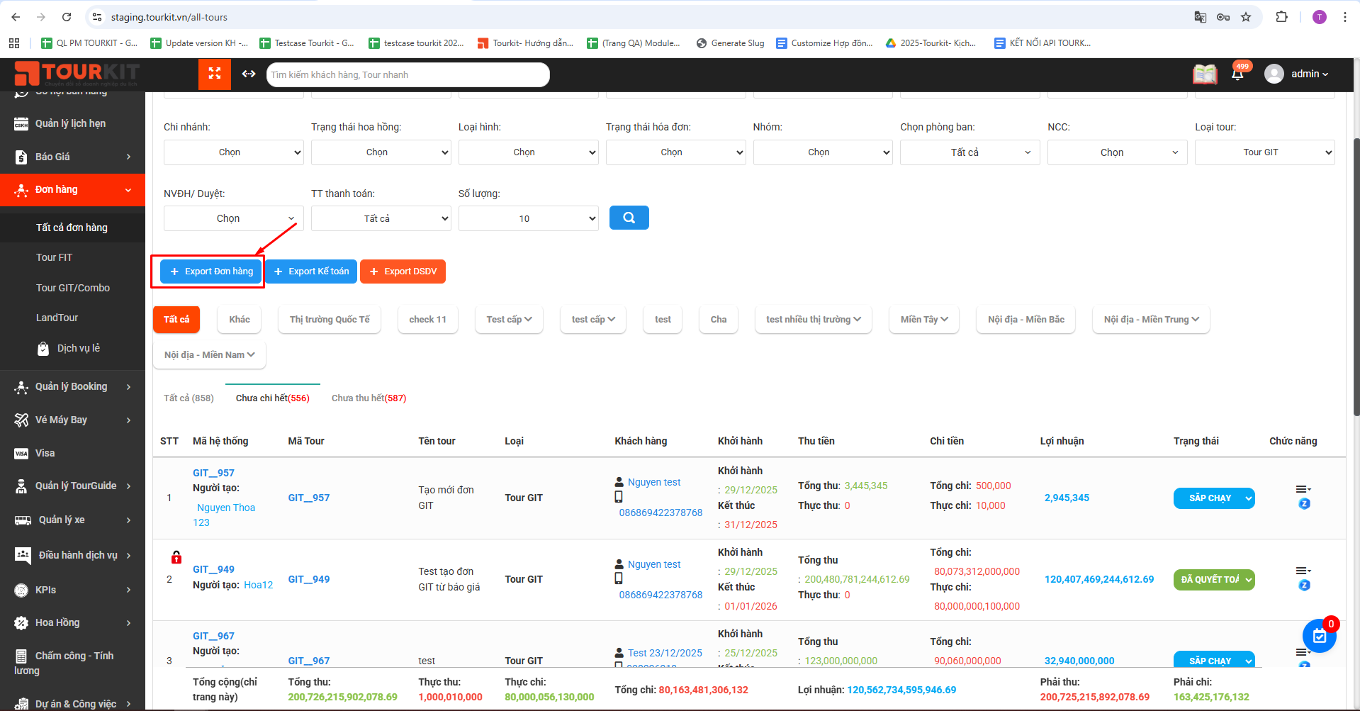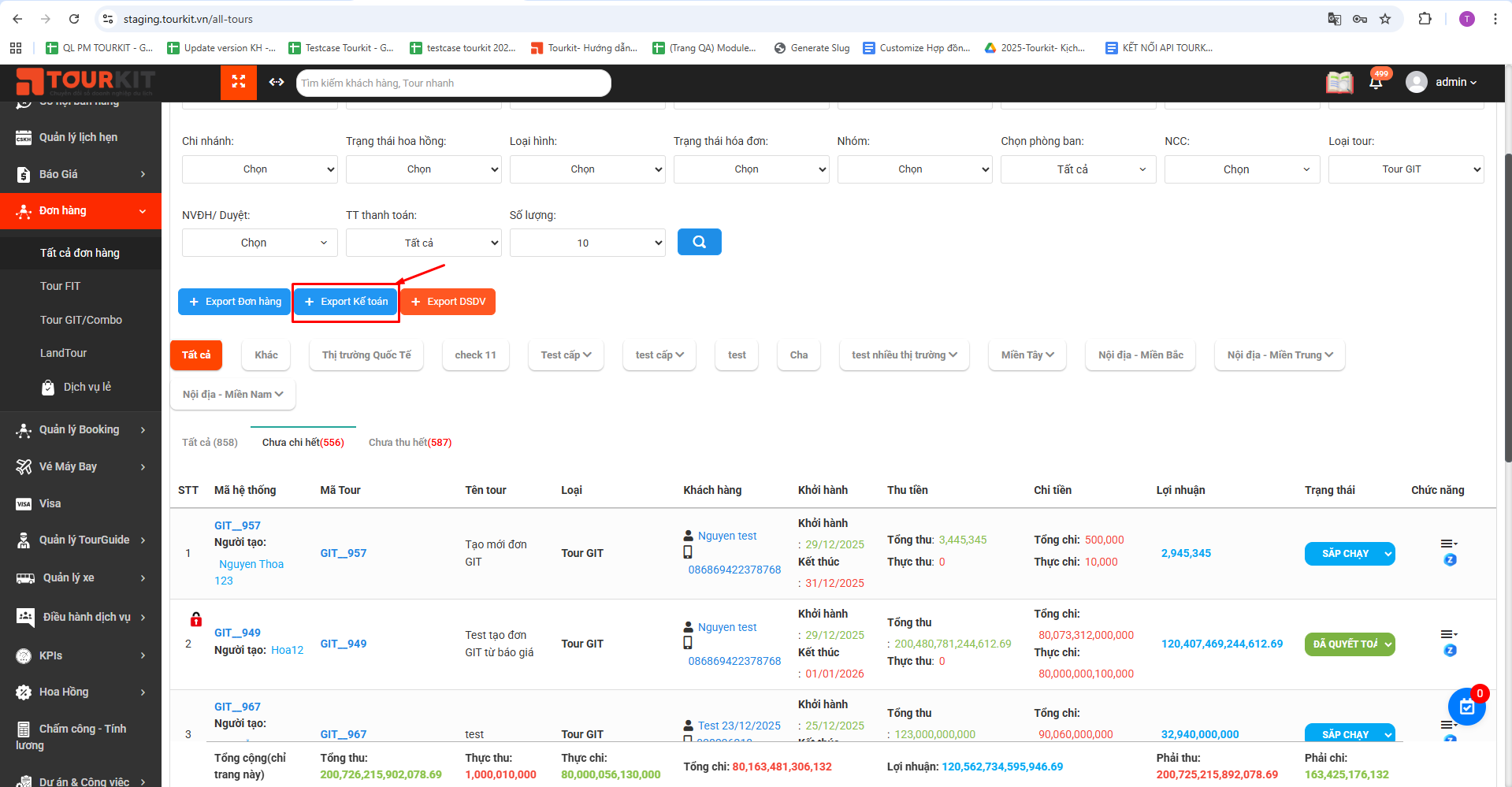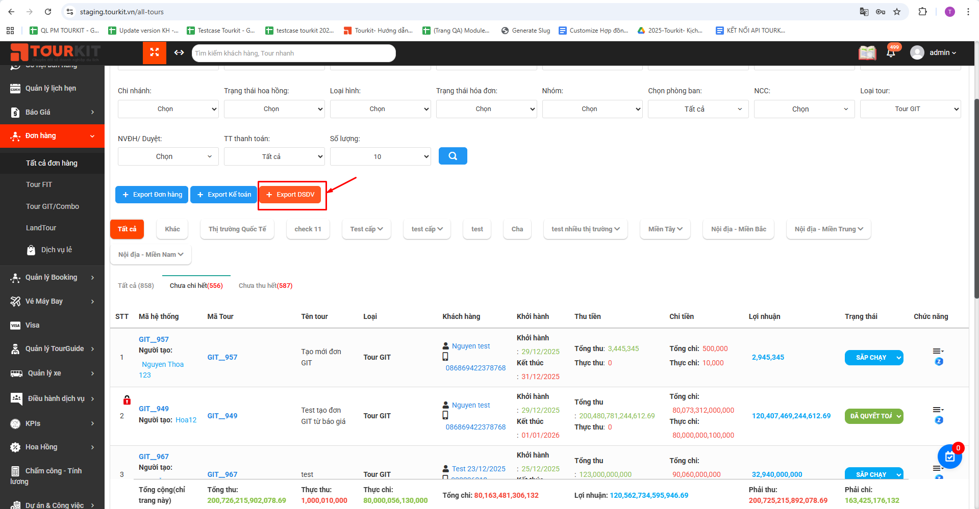 | Chưa chi hết | Bộ đếm + lọc tất cả các tour chưa chi hết |